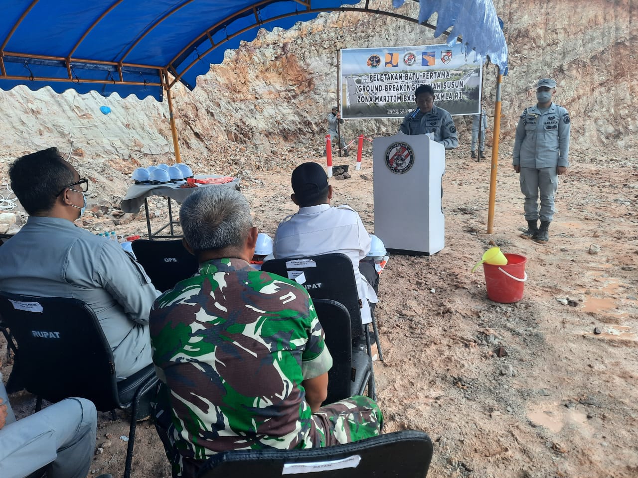 “Hari ini kita sama-sama menjadi saksi sejarah pembangunan awal Rumah Susun Bakamla RI. Semoga tujuan dibangunnya Rumah Susun dapat bermanfaat bagi pengembangan Kantor Kamla Zona Maritim Barat,” ujar Laksma Hadi Pranoto dalam sambutan pembukaan kegiatan peletakan batu pertama.