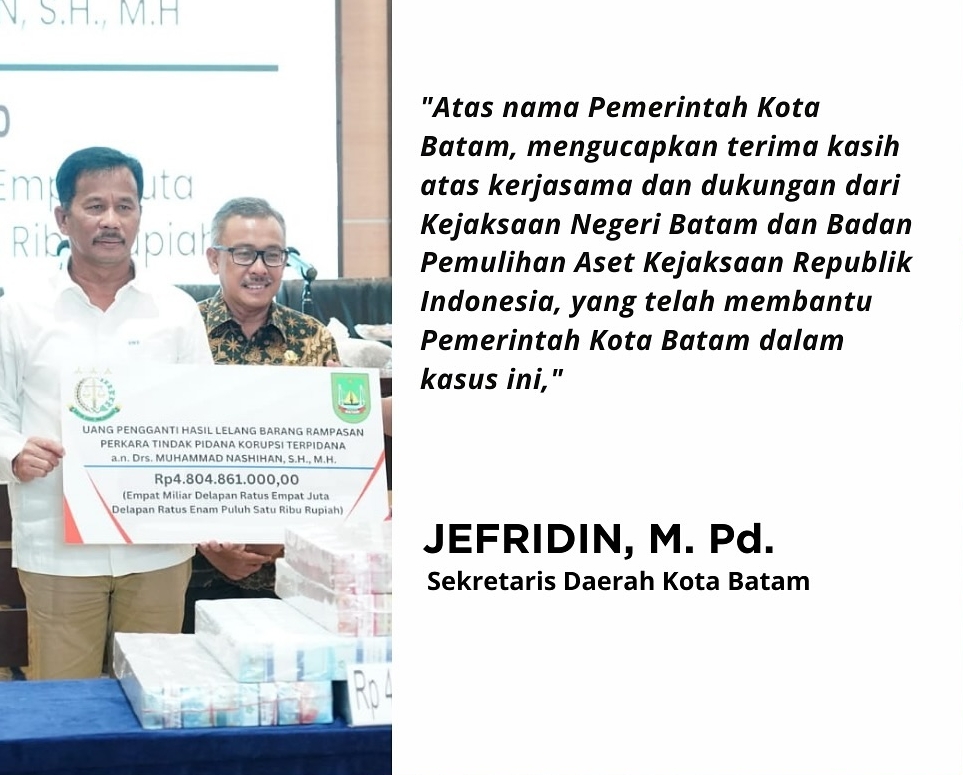 Kejaksaan Negeri Batam dan Badan Pemulihan Aset Kejaksaan Republik Indonesia, yang telah