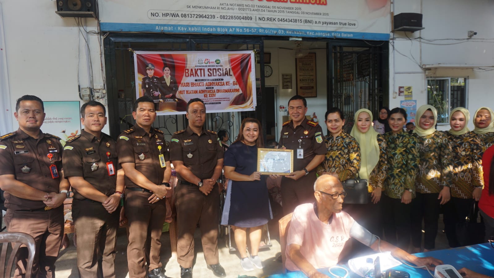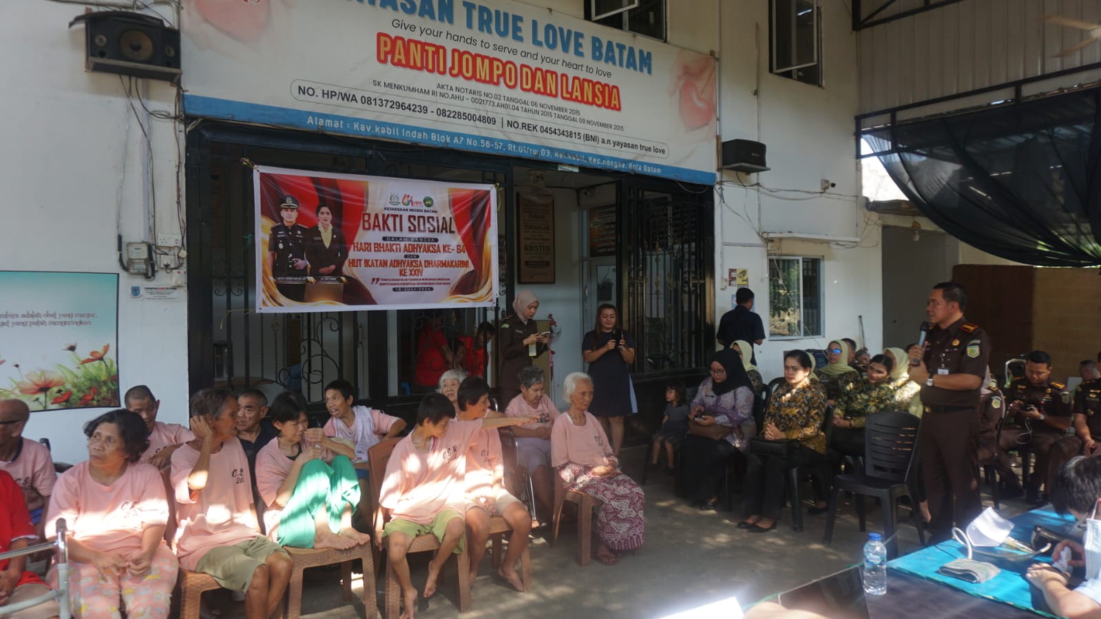 Selanjutnya, Kepala Kejaksaan Negeri Batam beserta Ibu Ketua IAD Daerah Batam melaksanakan bhakti sosial di Panti Jompo Yayasan True Love, yang berlokasi di Kelurahan Kabil, Kecamatan Nongsa. Dalam bhakti sosial ini, mereka memberikan 35 paket sembako, kacamata gratis, dan tali asih santunan kepada para penghuni panti jompo.