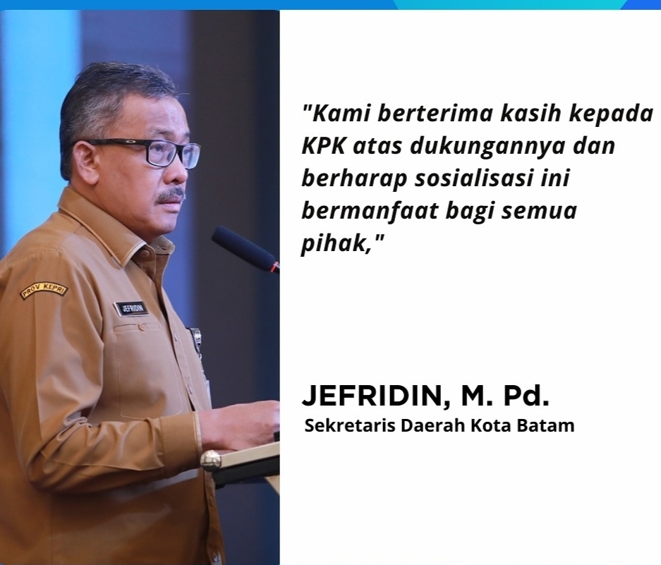 Jefridin juga mengungkapkan apresiasinya kepada pimpinan KPK dan berharap koordinasi serta kolaborasi yang telah terjalin dapat Jefridin juga mengungkapkan apresiasinya kepada pimpinan KPK dan berharap koordinasi serta kolaborasi yang telah terjalin dapat berlanjut untuk memastikan Batam bebas dari praktek korupsi. Narasumber dari Direktorat Monitoring KPK juga hadir untuk memberikan penjelasan mendalam melalui zoom meeting.