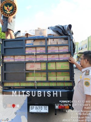 Batam, 9 Agustus 2024 – Kantor Satuan Pelayanan (Satpel) Pelabuhan Telaga Punggur, Balai Karantina Hewan, Ikan, dan Tumbuhan (BKHIT) Kepulauan Riau (Kepri) semakin memperketat pengawasan dan pemeriksaan setiap kendaraan yang keluar melalui Pelabuhan Punggur. Langkah ini diambil untuk memastikan bahwa semua produk hewan, ikan, dan tumbuhan yang dibawa melalui jalur ini memenuhi standar kesehatan dan peraturan karantina yang berlaku.