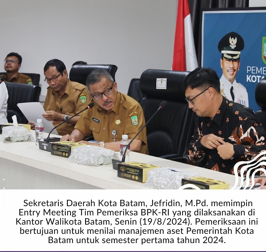 Batam, WBNNews – Sekretaris Daerah Kota Batam, Jefridin, M.Pd., memimpin Entry Meeting Tim Pemeriksa Badan Pemeriksa Keuangan Republik Indonesia (BPK-RI) yang digelar di Kantor Walikota Batam pada Senin, 19 Agustus 2024. Pertemuan ini menandai dimulainya pemeriksaan untuk menilai manajemen aset Pemerintah Kota Batam selama semester pertama tahun 2024.