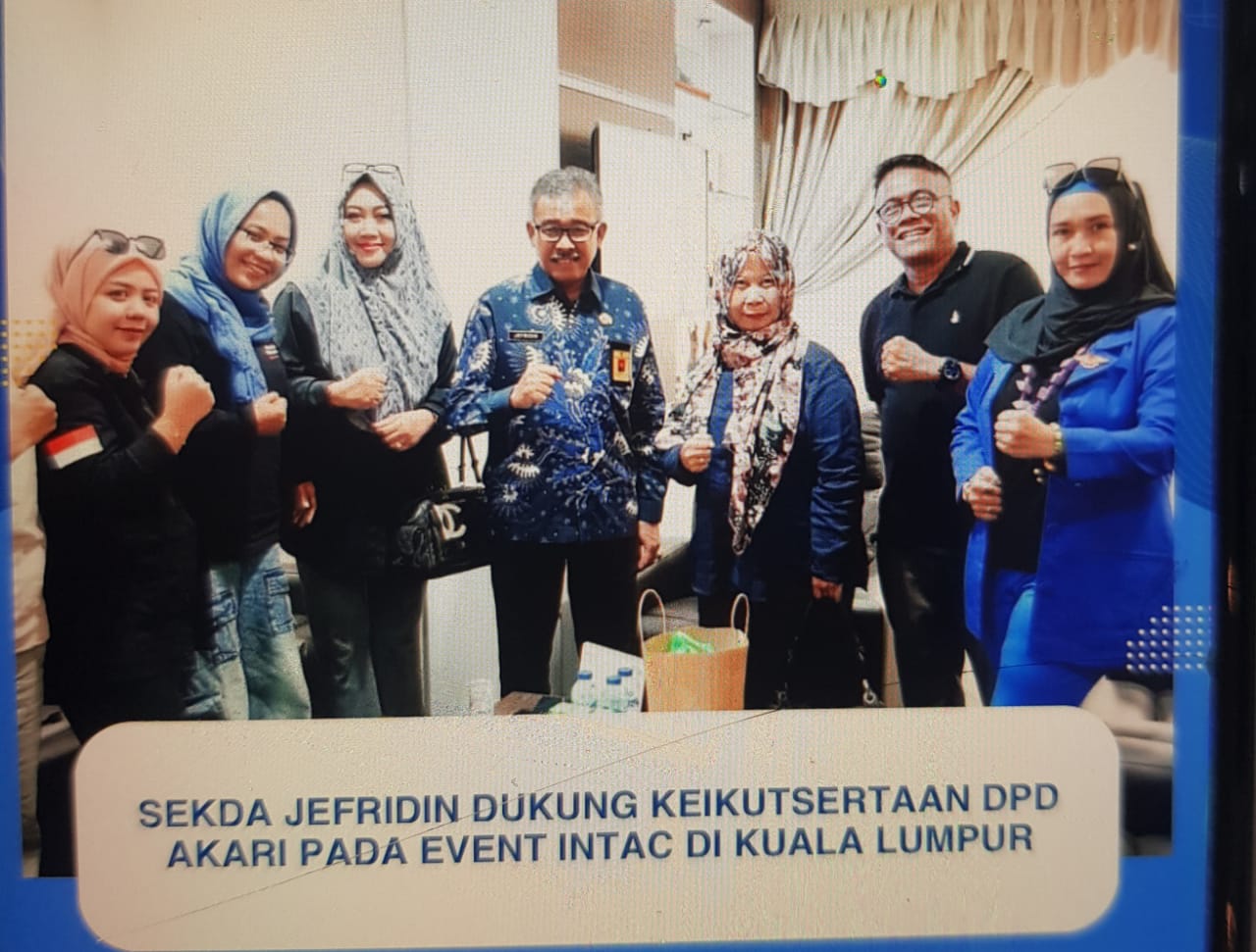 “Atas nama Pemerintah Kota Batam, Saya mendukung penuh keikutsertaan tim DPD AKARI di acara tersebut,” kata Jefridin. Ia mengapresiasi inisiatif DPD AKARI untuk memperkenalkan ragam budaya Kepulauan Riau di kancah internasional. Menurut Jefridin, hal ini sangat penting untuk menampilkan kearifan lokal yang ada di seluruh kabupaten/kota di Provinsi Kepri.