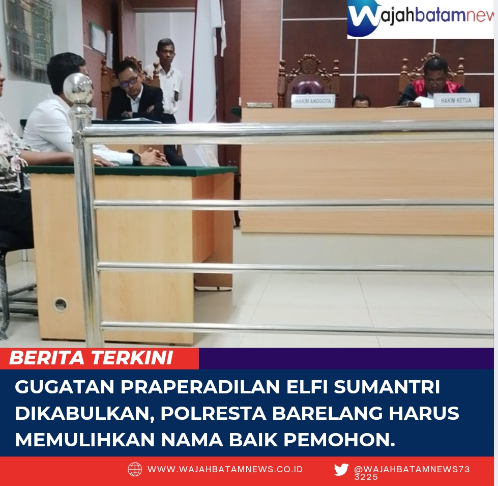 Gugatan Praperadilan Elvi Sumanti dikabulkan, Polresta Barelang Harus Memulihkan Nama Baik Pemohon
