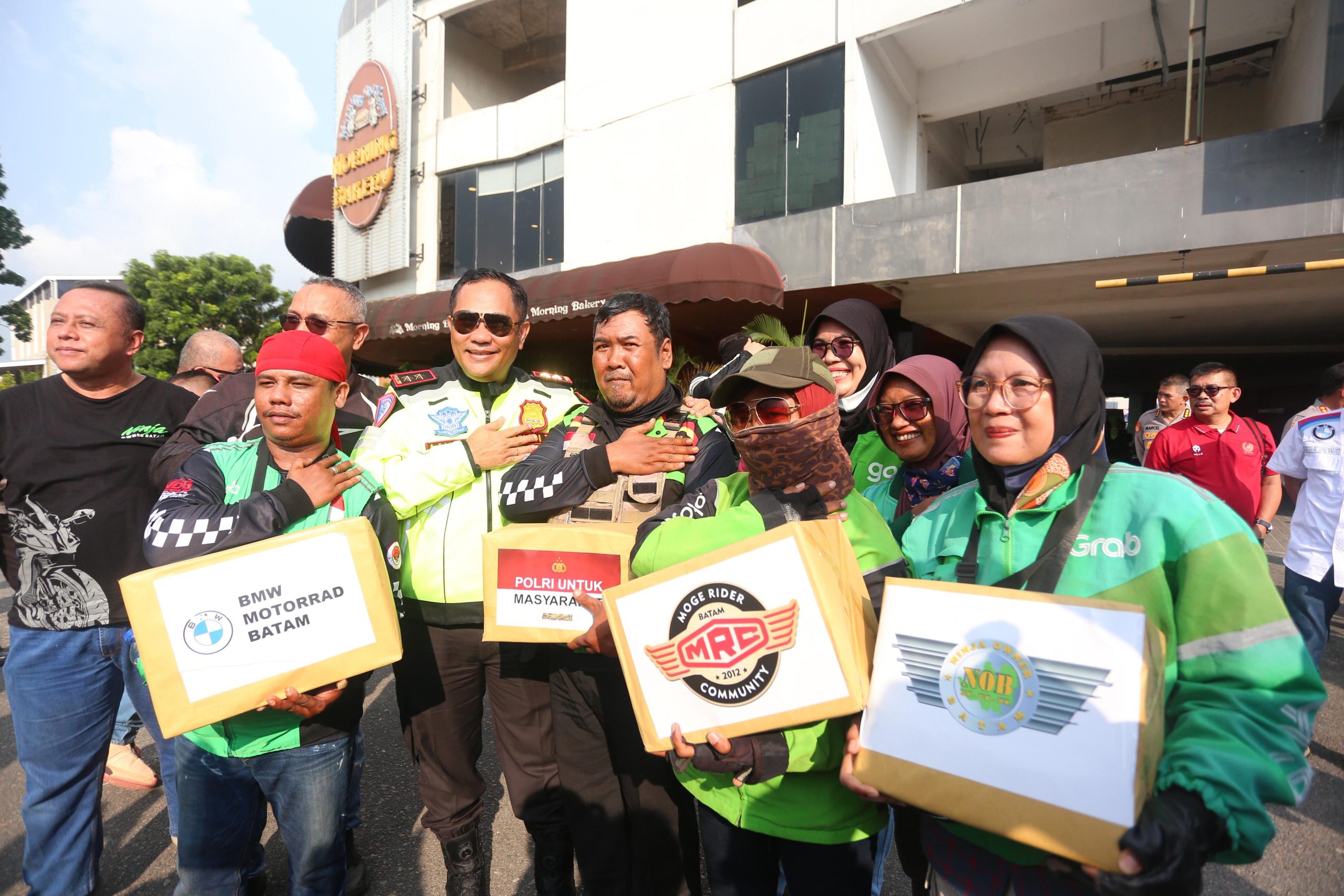 Rangkaian kegiatan ditutup dengan pembagian sembako, sesi foto bersama, dan ramah tamah antara anggota Polri, komunitas moge, dan para driver ojol.