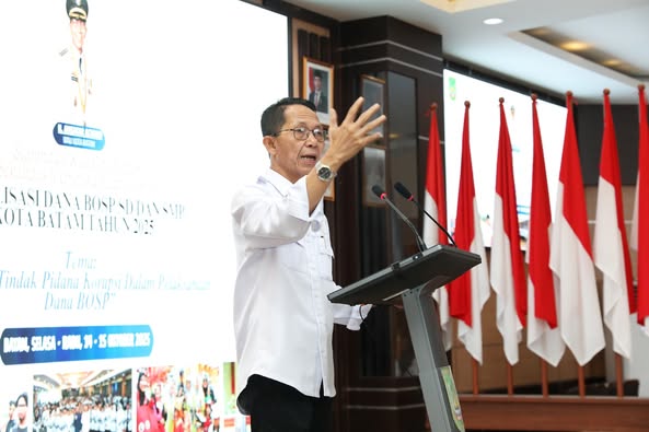 Batam – Wali Kota Batam, Amsakar Achmad, secara resmi membuka kegiatan Sosialisasi Dana Bantuan Operasional Satuan Pendidikan (BOSP) SD dan SMP Kota Batam Tahun 2025, yang digelar di Kantor Wali Kota Batam, Rabu (15/10/2025). Kegiatan ini mengusung tema “Pencegahan Tindak Pidana Korupsi dalam Pelaksanaan Dana BOSP” dan dihadiri oleh para kepala sekolah serta pengelola dana pendidikan di lingkungan Pemerintah Kota Batam.
