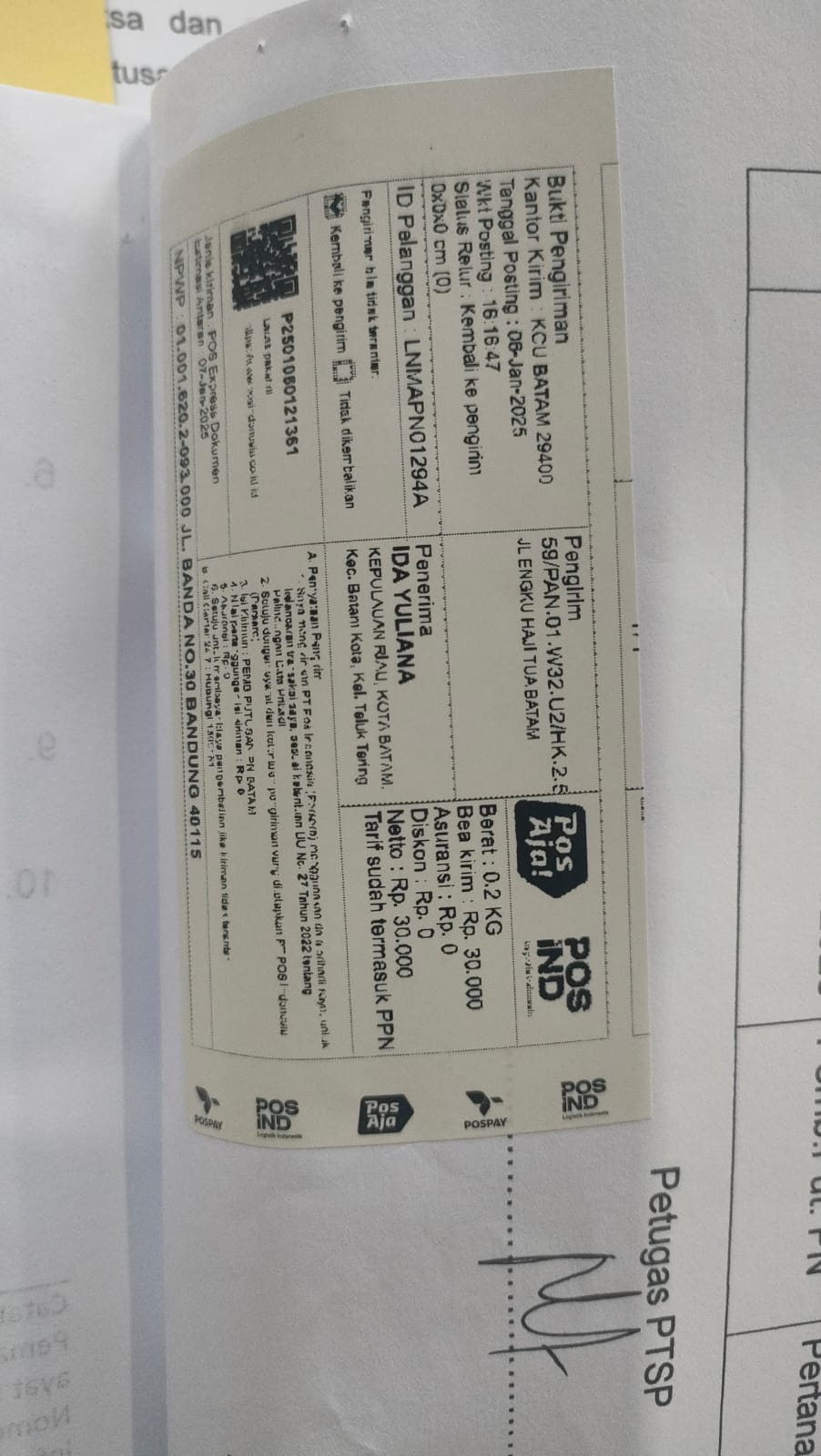 Tanda terima pengiriman surat panggilan untuk Ida juliana beda alamat